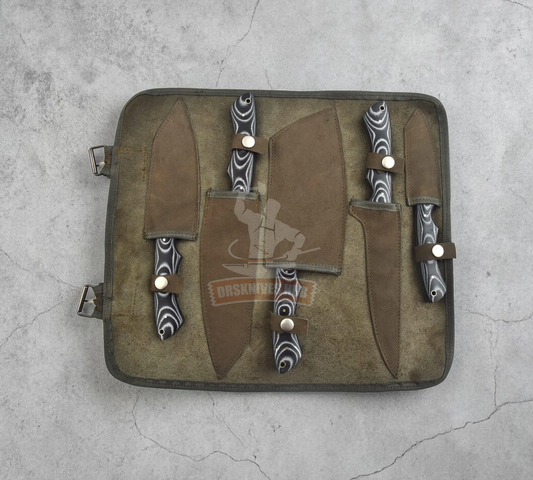 Handmade Damascus Chef Knife Set of 09 Pieces With Leather Bag
