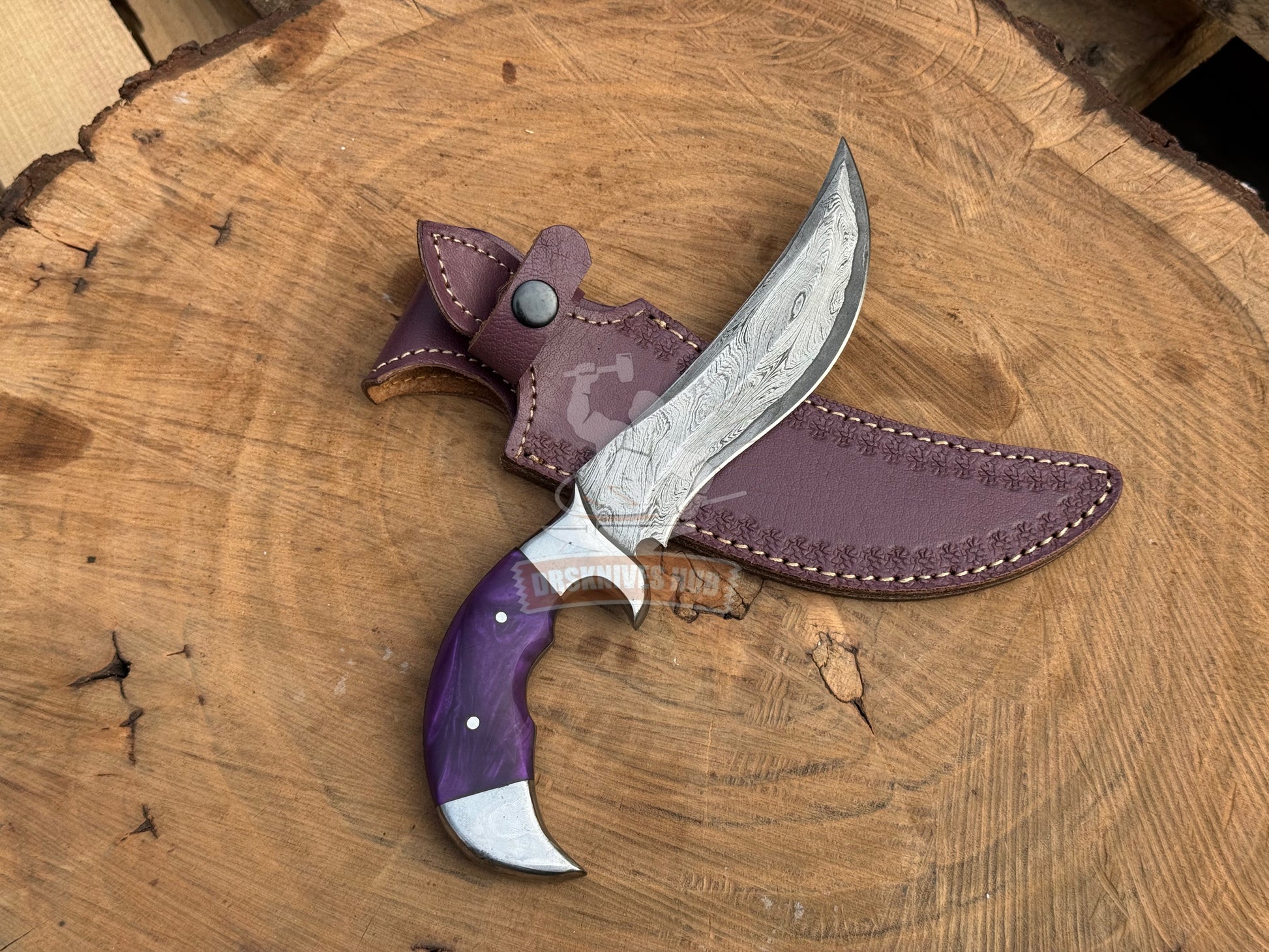 Experience the perfect fusion of artistry and functionality with our custom handmade Damascus hunting knife, expertly hand-forged for serious hunters and outdoor enthusiasts. This exceptional 10.5-inch hunting knife features a razor-sharp Damascus steel blade and durable resin handle, creating a reliable tool that delivers both stunning visual appeal and superior cutting performance for all your hunting adventures.