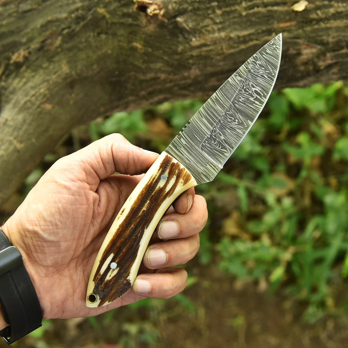 Hand-forged from authentic Damascus steel, this camping knife delivers exceptional cutting performance and edge retention. The layered steel construction creates a blade that's both incredibly sharp and remarkably durable for demanding outdoor use.