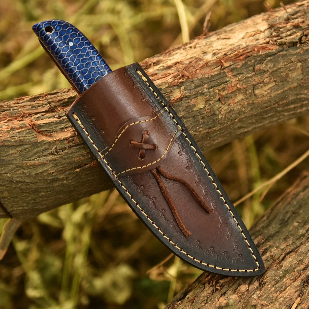 Each knife comes with a genuine leather sheath for safe storage and convenient carry. The durable leather construction protects your blade and provides secure belt carry for hunting trips and outdoor adventures.