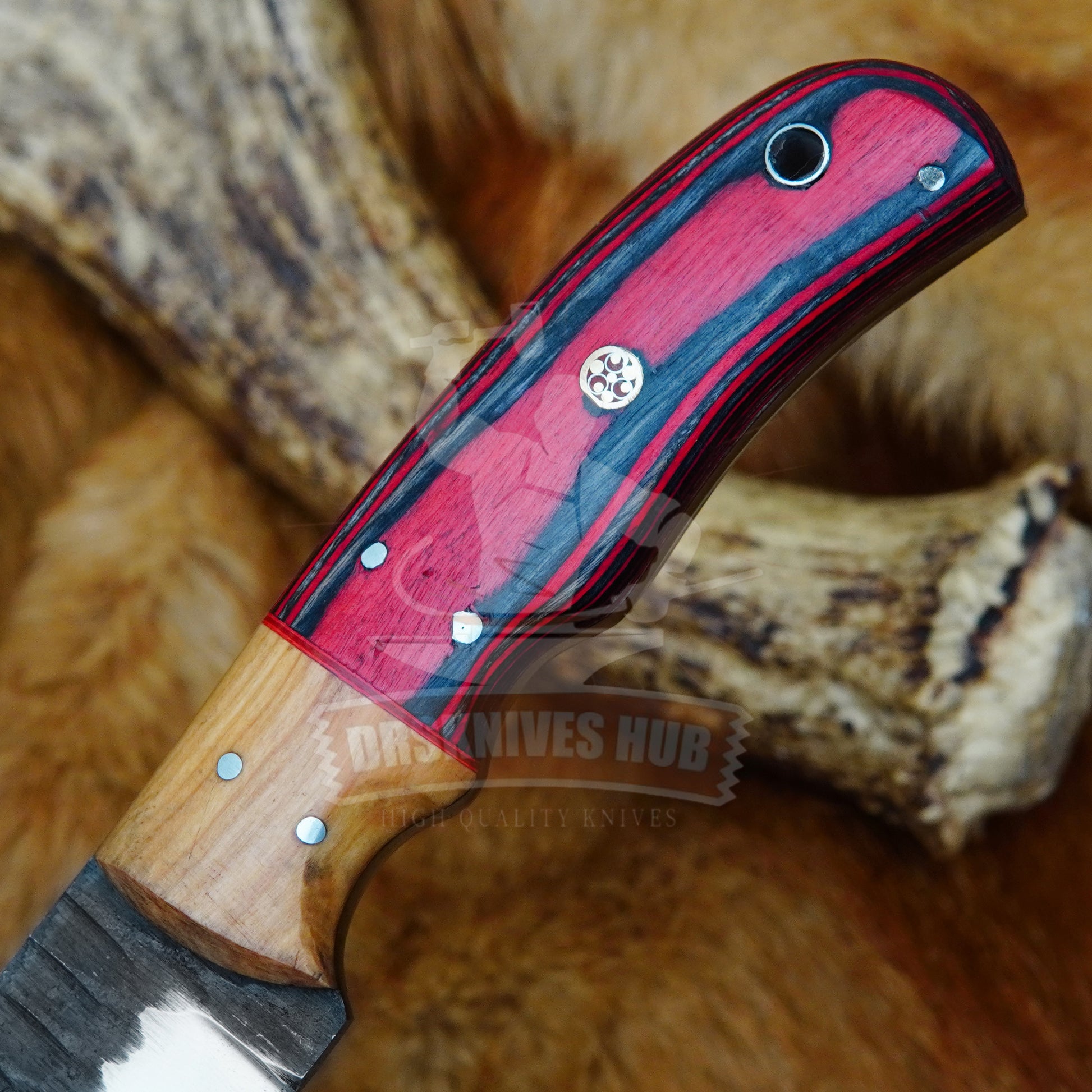 This one-of-a-kind handmade Carbon Hunting knife is both functional and stunning. Featuring a rugged, hand-forged Carbon steel blade and a natural Wood handle, this knife is perfect for hunting, skinning, camping, and outdoor use. The gut hook design makes field dressing quick and easy, while the unique handle gives each knife its own character.